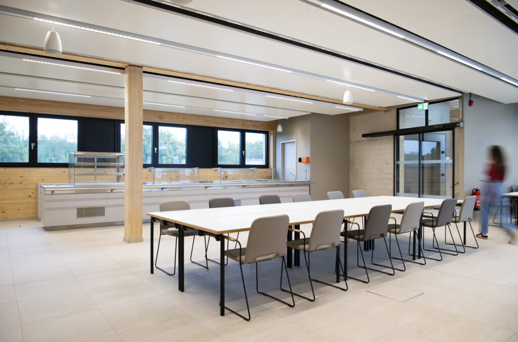L’extension de la cafétéria existante de l‘Institut Saint-Joseph avait pour objectif d‘augmenter sa capacité en passant de 90 à 180 places assises.