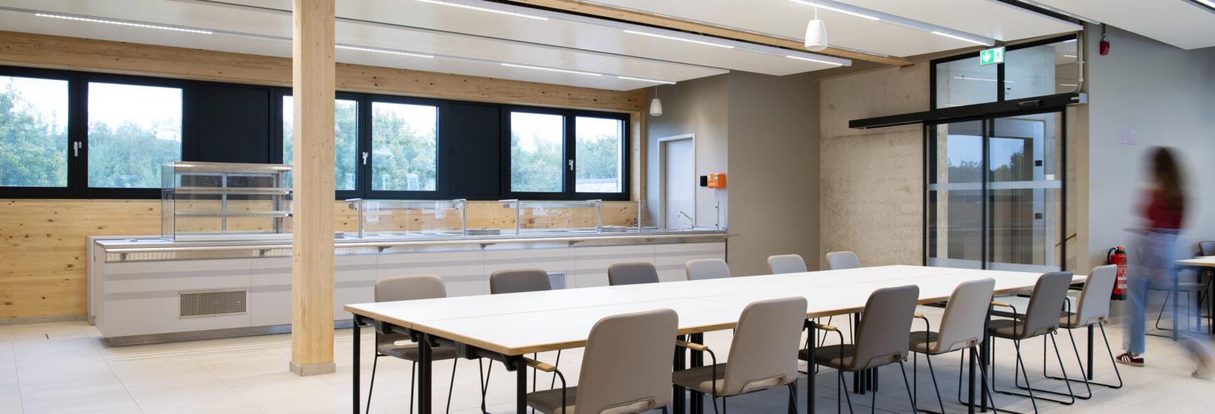L’extension de la cafétéria existante de l‘Institut Saint-Joseph avait pour objectif d‘augmenter sa capacité en passant de 90 à 180 places assises.