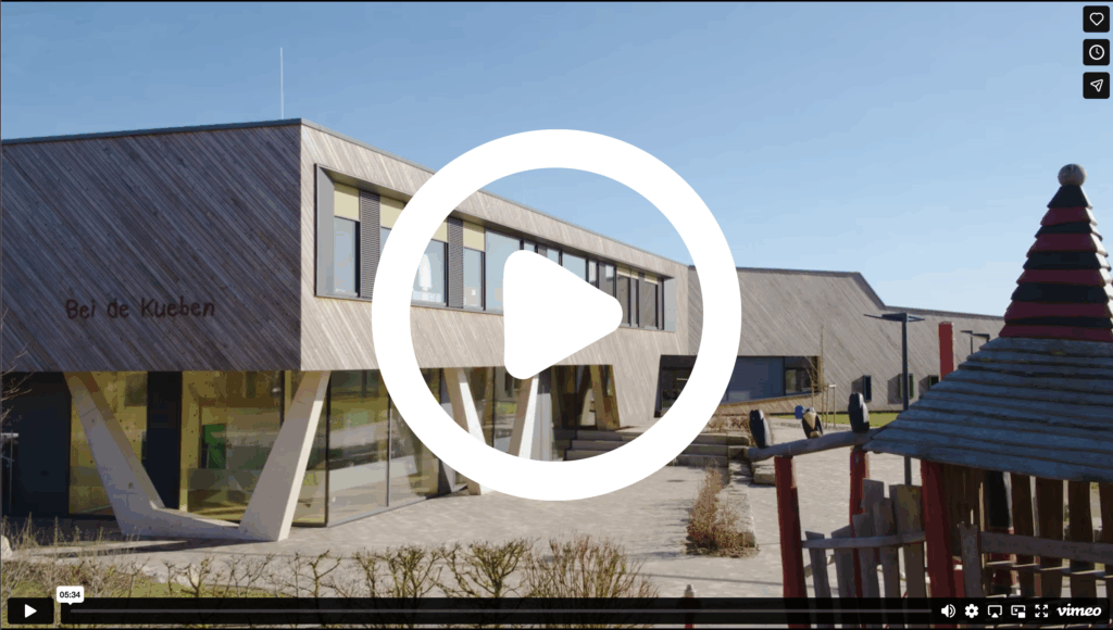 Très facilement reconnaissable : Ce bâtiment est destiné aux enfants. La maison relais Angelsberg, située dans la commune de Fischbach, a été inaugurée en 2017 et constitue une étape importante pour nos projets durables.