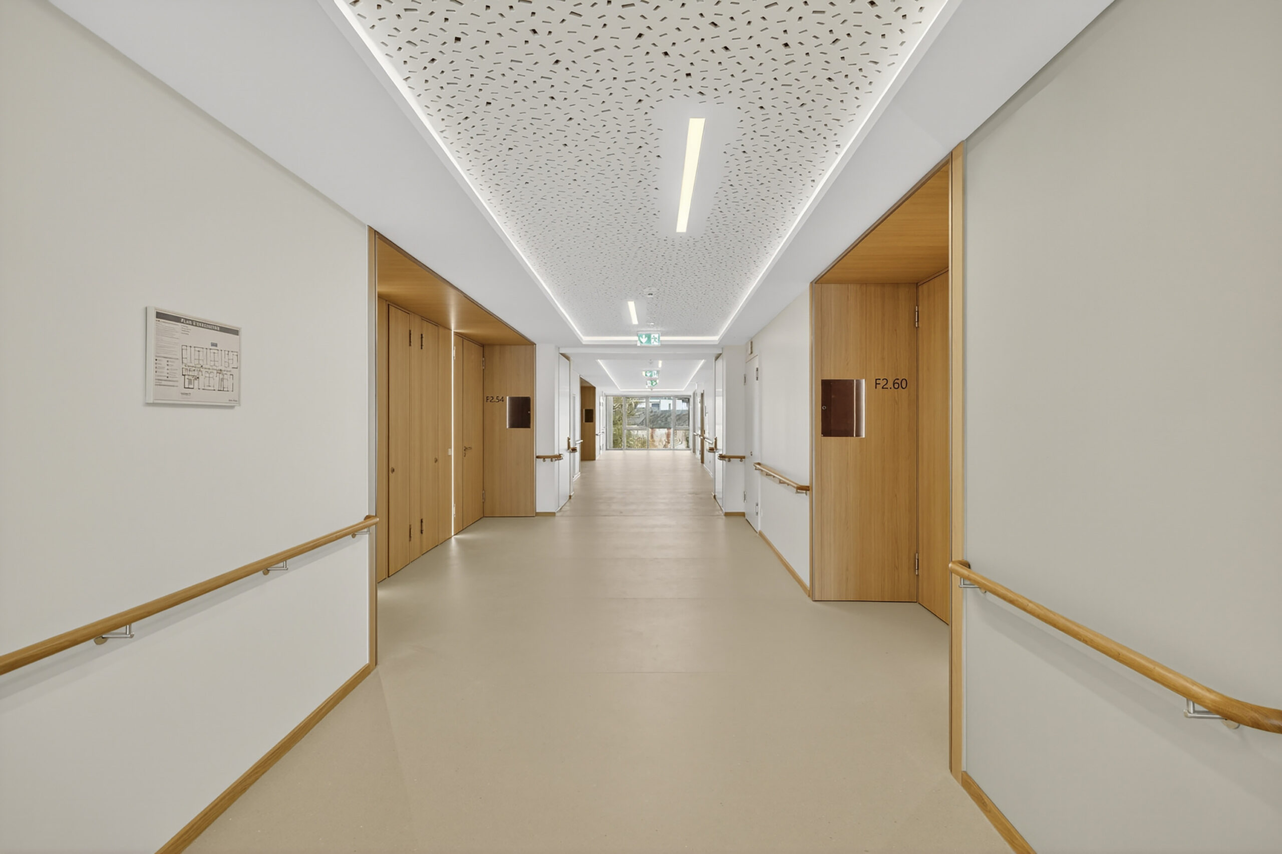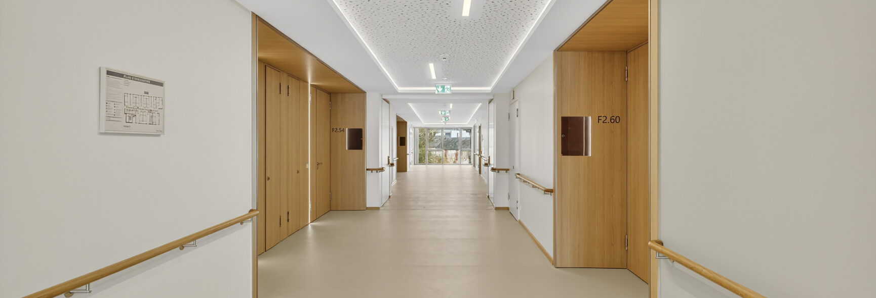 Une galerie couverte et chauffée relie les deux bâtiments et offre ainsi un accès aisé d’une aile à l’autre.